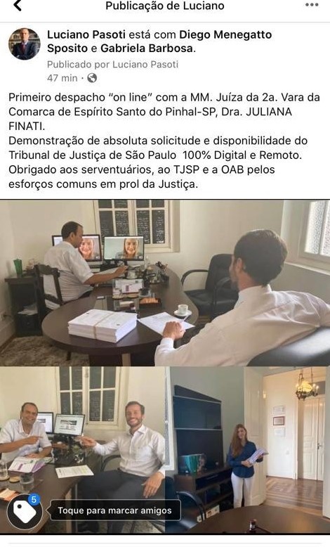 Demonstração de absoluta solicitude e disponibilidade do Tribunal de Justiça de São Paulo 100% Digital e Remoto.